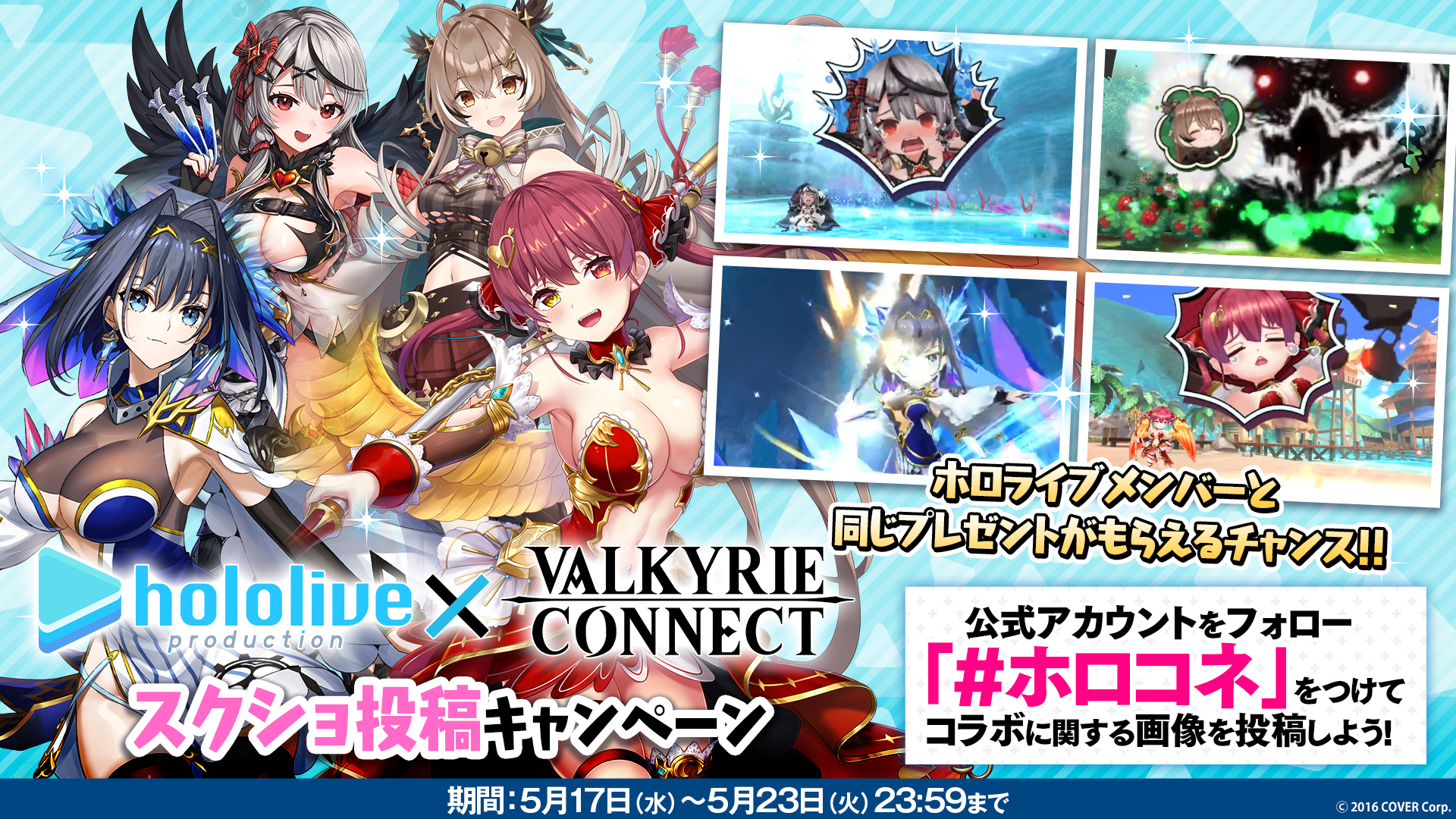 株式会社エイチームのグループ会社である株式会社エイチームエンターテインメント(本社:愛知県名古屋市、代表取締役社長:中内之公)は、ハイファンタジーRPG『ヴァルキリーコネクト』(ヴァルコネ)にて、2023年5月17日(水)より、カバー株式会社(本社:東京都千代田区、代表取締役社長:谷郷元昭)が運営するVTuber事務所『ホロライブプロダクション』とのコラボを開始します。本コラボは『ヴァルコネ』を配信する全世界で同時開催します。