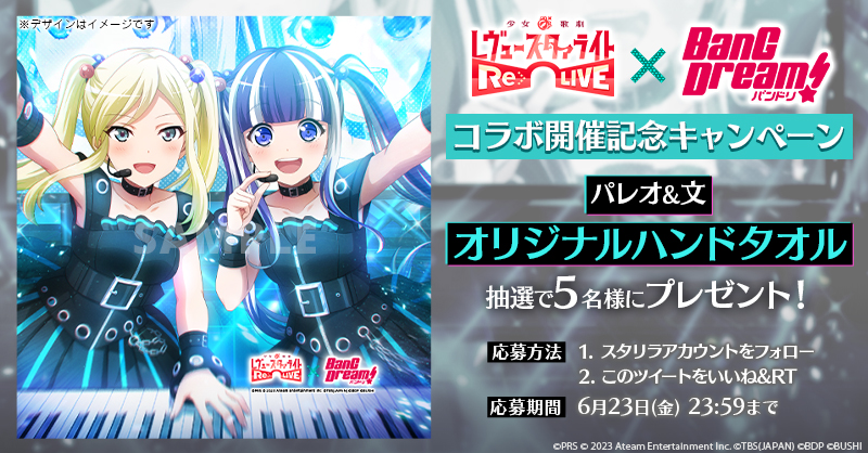 株式会社エイチームのグループ会社である株式会社エイチームエンターテインメント(本社:愛知県名古屋市、代表取締役社長:中内之公)と、株式会社ブシロード(本社:東京都中野区、代表取締役社長:木谷高明、以下ブシロード)および、株式会社TBSテレビ(東京都港区赤坂、代表取締役社長:佐々木卓、以下TBS)が共同開発したゲームアプリ『少女☆歌劇 レヴュースタァライト -Re LIVE-(スタリラ)』は、2023年6月9日(金)よりアニメ『BanG Dream!(バンドリ!)』とのコラボを開催します。