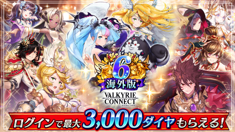 至高のハイファンタジーRPG『ヴァルキリーコネクト』、 海外版の7周年を記念してキャンペーンを開催! ログインするだけで3,000ダイヤもらえる!毎日10連ガチャ無料! 今だけ新キャラや即戦力キャラを無料で獲得できるチャンス!